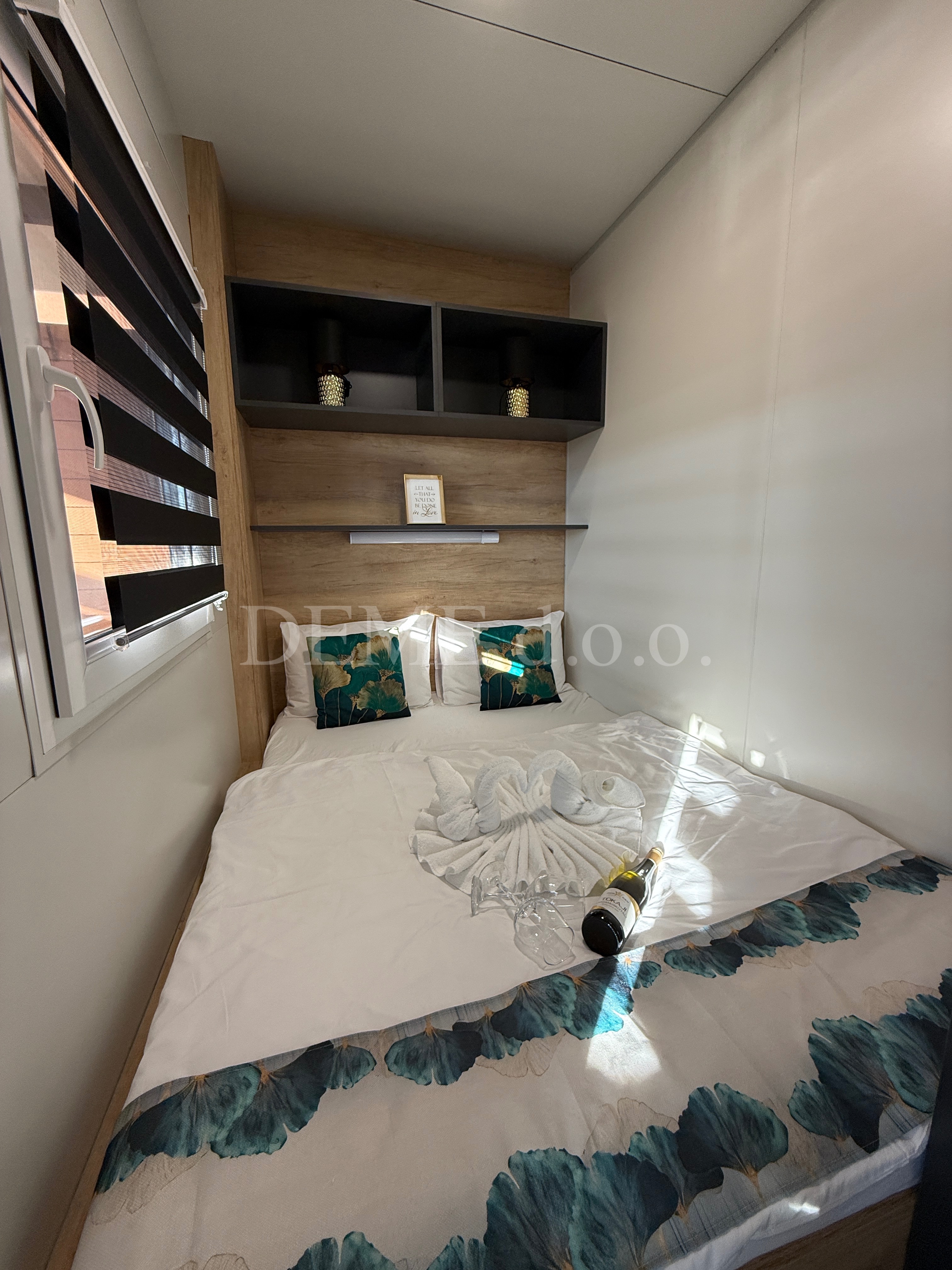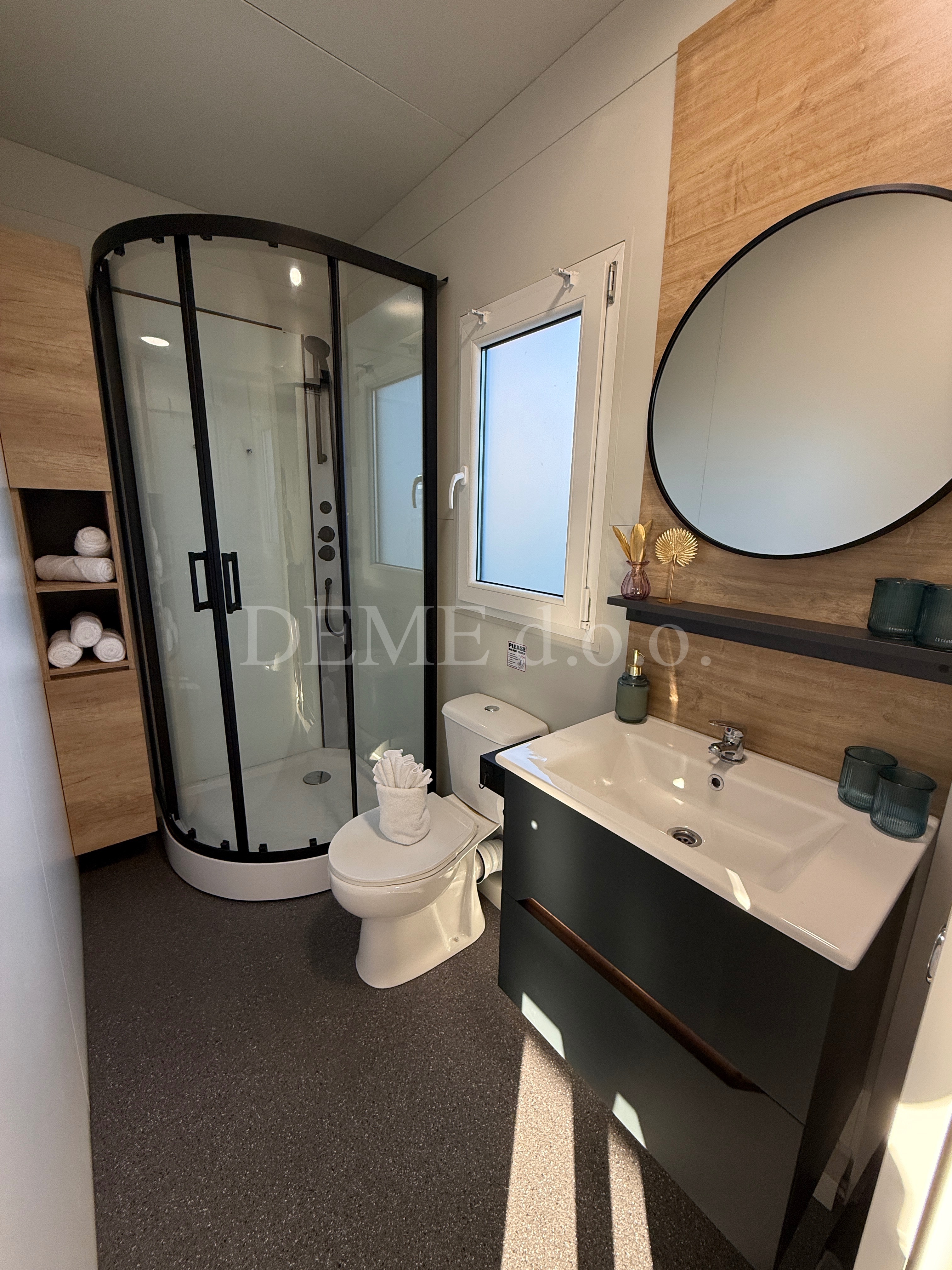A 24 m²-es mobilház praktikus kialakításának köszönhetően ideális választás családok vagy baráti társaságok számára. Az elrendezés a következőket tartalmazza: