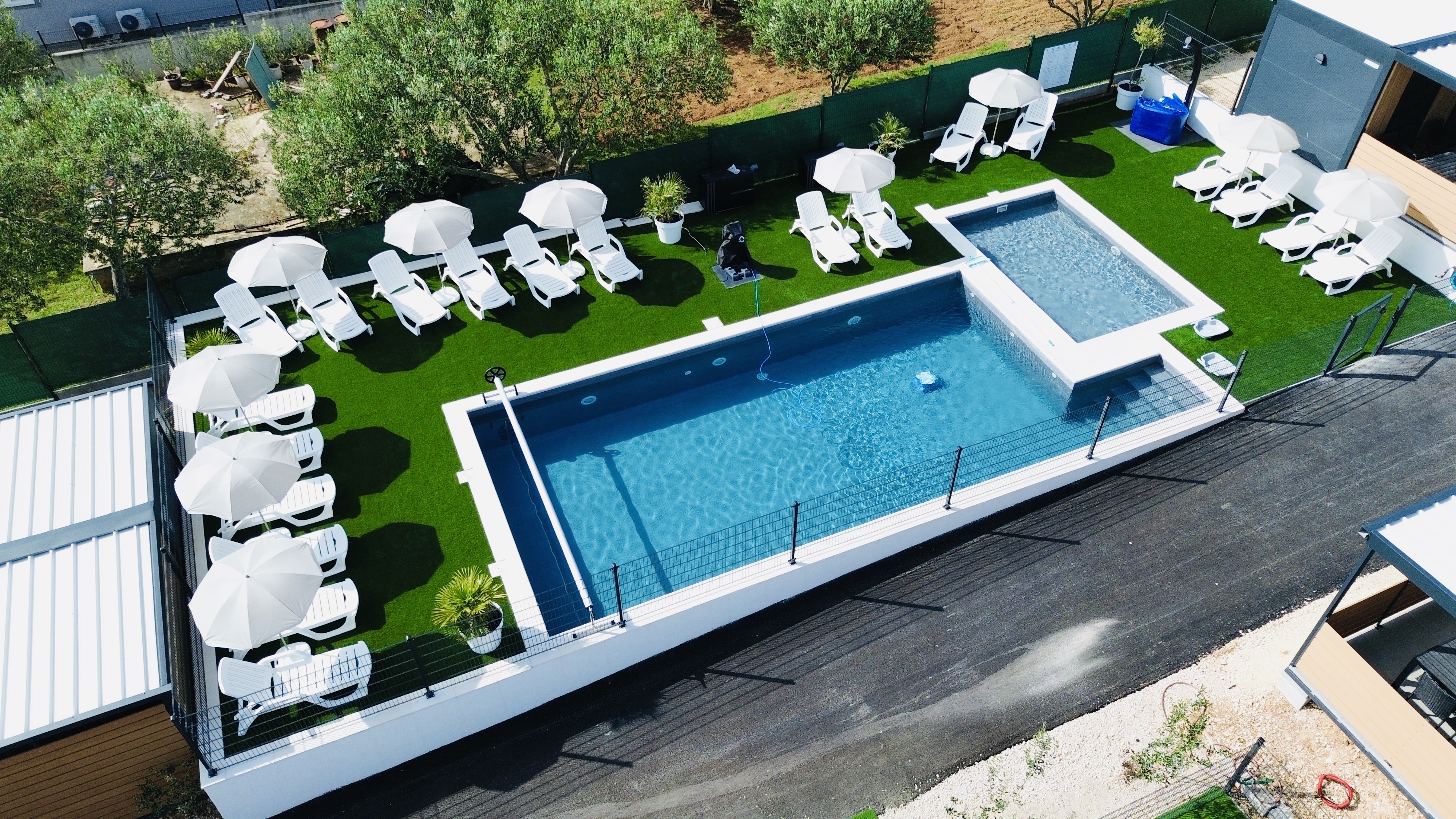 Fedezze fel a pihenés új szintjét modern mobilházainkban, amelyek az újonnan megnyílt Camp Deme magánkemping területén találhatók, Sveti Filip i Jakov hangulatos környezetében.